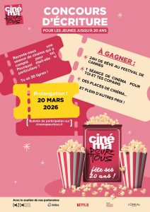 Le concours d’écriture est de retour : partagez avec nous un moment de cinéma qui vous a marqué. Nous avons hâte de vous lire ! Retrouvez toutes les informations pour participer ci-dessous.